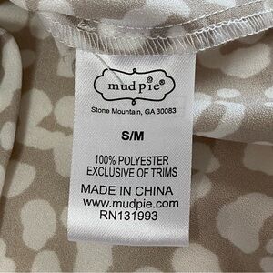 MUDPIE / Tan & White Cheetah Print V-neck Oversized Tie f Blouse Size S/M