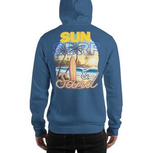 Embrace the sun, surf, and sand with our SUN SURF & SAND Trendy Sweatshirt. This stylish and comfortable surf hoodie allows you to showcase your love for beach vibes while staying fashion-forward.