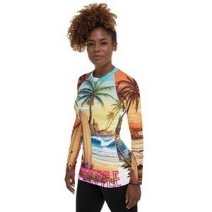 Introducing the MUDPUPs Surf & Sand custom Crop top Rashguard SunShirt, one of his top selling t shirts, a unique and personalized choice for surfer girls and beach enthusiasts. This custom Crop top allows you to express your individual style while enjoying the sun and waves.