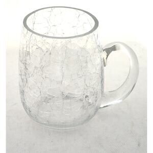 Unique large glass mug/cup. This has a crackle finish. It has a clear handle. This mug holds 20 oz (2.5 cups).