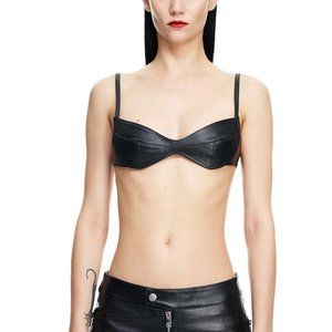 Mugler H&M. Soft-cup bra in soft leather – ideal for styling with tailored garments. Narrow shoulder straps and lined cups for natural shape and light support. Hook-and-eye fastening at back. Crafted from chrome-free leather.