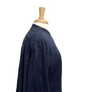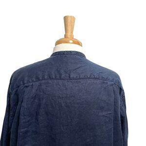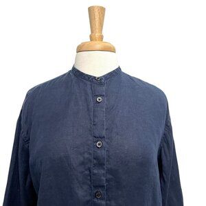 MUJI 100% Hemp Oversized Mandarin Collar Button Front Tunic Top Blue size Medium