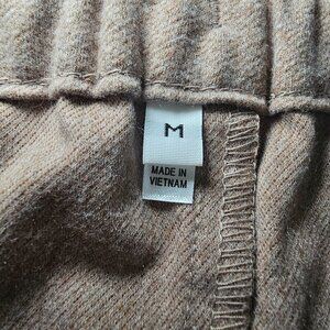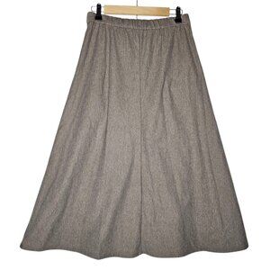 MUJI Full A-Line Brushed Cotton Blend Midi Skirt Pockets Beige Taupe Sz M