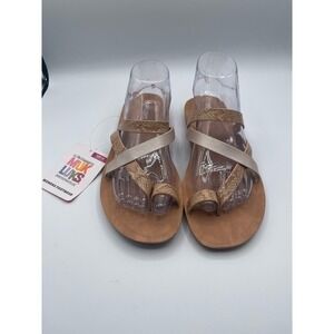 MUK LUKS Beige & Pearl Snake Embossed Criss Cross Strap About Town Sandal
