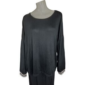 MUK LUKS Butterknit Crew Neck and Jogger Lounge Set Black 1X Comfort Pockets