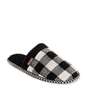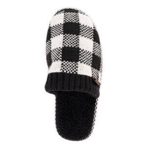 MUK LUKS Men's Rib Knit Scuff Slipper with Matching Bottle Sweater Black Buffalo Check