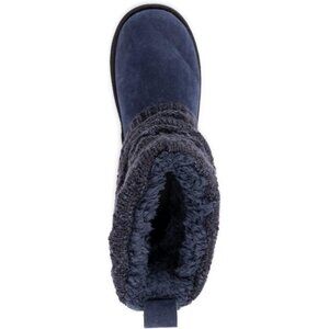 Treaded TPR Sole - 100% Polyester Insole - 100% Polyester Faux Suede Upper -100% Acrylic Knit - 100% Polyester Faux Fur Lining - No Heel - Water Resistant - Multiple color options available - Women’s Whole and Wide Sizes 6-11 (1/2 sizes order up).