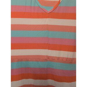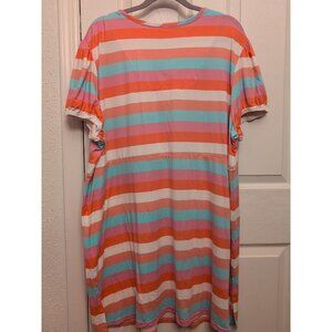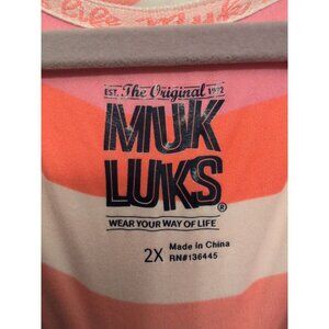 The MUK LUKS Women's Plus Size Dress in 2XL is a comfortable and stylish nightgown made from polyester knit fabric. This chic dress features a vibrant pink color with striped pattern, a V-neckline, and short puff sleeves, perfect for a casual occasion in the spring season. The pullover closure and knee-length design add to the convenience and ease of wearing this colorful dress from the trusted brand, MUK LUKS. Easy to care for with machine washable instructions, this dress is a flattering and fun addition to any woman's wardrobe.