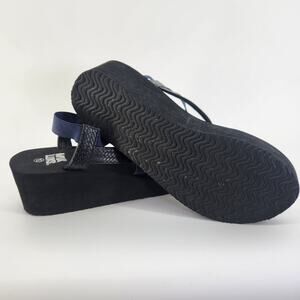 MUK LUKS Women's Size 10 Sabine Wedge Sandals Black and Blue.