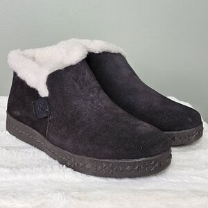 MUK LUKS Womens Suede Street West End Wool Blend Ankle Bootie 7.5 CHOCOLATE
