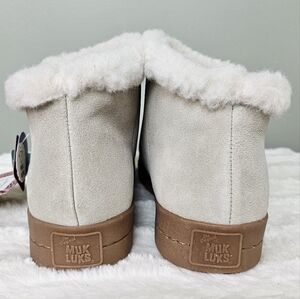 MUK LUKS Womens Suede Street West End Wool Blend Ankle Bootie 7.5 CREAM STONE