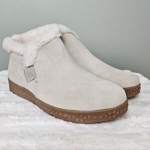 MUK LUKS Womens Suede Street West End Wool Blend Ankle Bootie 7.5 CREAM STONE