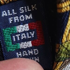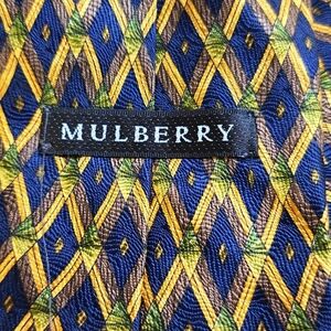 Authentic MULBERRY Made in Italy Vintage Handcrafted Silk Abstract Print Tie, in excellent preowned condition. It’s very well cared for and comes from a non-smoking, pet free small business. All pictures are of the actual item, taken in the studio (no stock photos). It is very rare and hard to find style, especially in this condition.