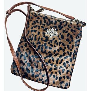 Authentic Mulberry crossbody, adjustable strap, leopard clad hair, top zip closure, roomy interior, rich color, quality/ durability and signature logo