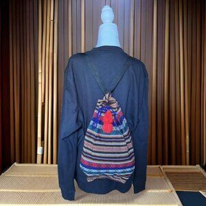 Enhance your boho look with our MULTI BACKPACK. Made of durable cloth and featuring a vibrant array of colors, this backpack is perfect for embracing your hippy style. Whether you're heading to a music festival or exploring the great outdoors, this backpack will add the perfect touch to any outfit.