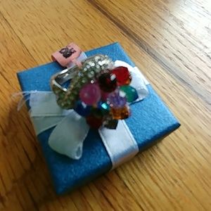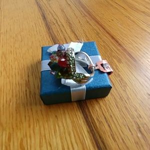 πππNWT!! THIS RING HAS PLENTY OF ATTITUDE AND BLING!!! LARGE MULTI-COLORED CRYSTALS SURROUNDED BY SMALLER CLEAR CRYSTALS IN A SILVER BAND. SIZE 8. NOT STAMPED 925. HIGH GRADE TARNISH RESISTANT SILVER METAL ALLOY.πππ