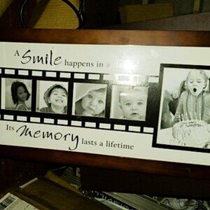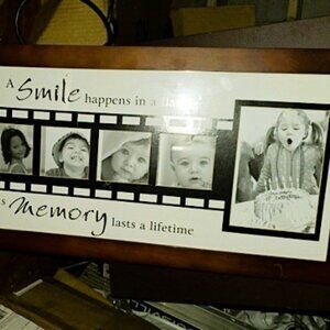 NEW MULTI PHOTO FRAME IN DARK WOOD. HOLDS 4 5X7 OR 4X6. THE ITEM IS WALL ART WITH SWEET WORDING.