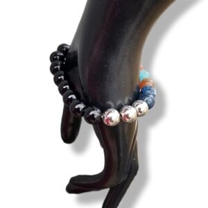 Add a pop of color with this stretch bracelet made up of dyed agate gemstone beads of various colors. Bracelet also has black and silvertone beads as well. Bracelet is stretch and can accommodate different sizes.
