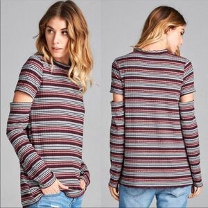 MULTI-COLORED KNIT SWEATER WINE RED TOP
