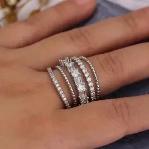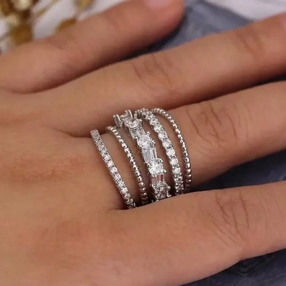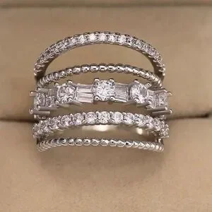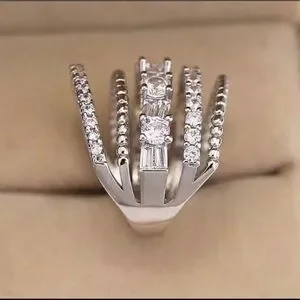Multi-layer Ring Zircon. Cocktail everyday special occasions. Silver plated Inventory: B-10