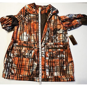 MULTIPLES Jacket 0X 14W Rolled Sleeved Zip Front Rain Orange Brown White NWT