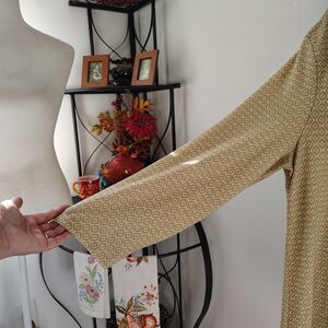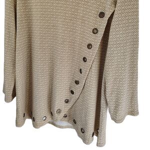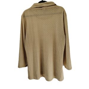 MULTIPLES Soft Tunic Shirt XL Extra Large Women's Tan Print Cowl Neck Long Sleeve w Grommets Embellishments. 46" chest, 31" shoulder to front hem. Compare to $60 new!