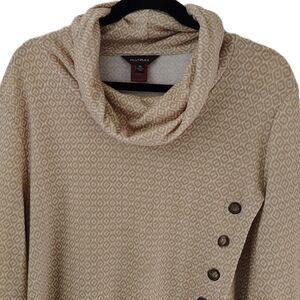 MULTIPLES Soft Tunic XL Women's Tan Print Cowl Neck Long Sleeve w Grommets