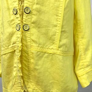 multiples yellow 100% linen button long sleeve unlined lightweight jacket with ruffle trim, plus size 1x/xl