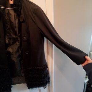 MULTIPLES black lightweight ruffled coat. Sz med. Long sleeves . Open