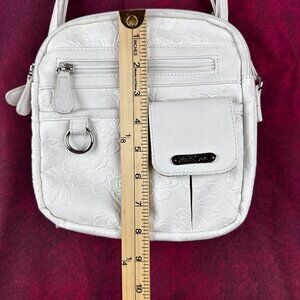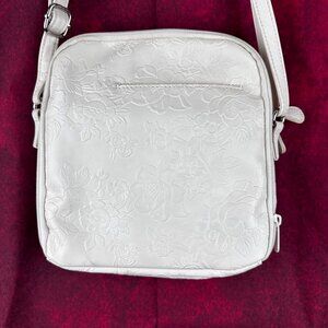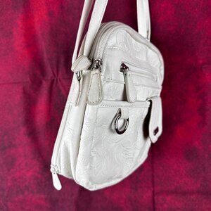 MULTISAC ELEGANT WHITE FLORAL EMBOSSED CROSSBODY BAG