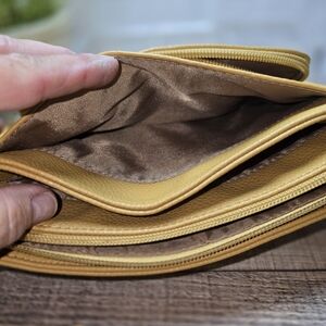 MULTISAC MUSTARD YELLOW CROSSBODY PURSE MULTIPLE COMPARTMENTS MID SIZED