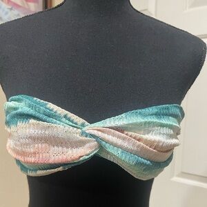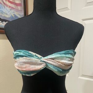 SHOW ME YOUR MUMU TUBE TOP, AQUA AND CREAM, TWISTED FRONT, ELASTIC BACK, SIZE SMALL, POOL PARTY, BEACH, TROPICAL RESORT, NEW WITH TAG