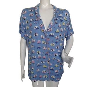 MUNKI MUNKI Pajamas, XXL, Blue, RVs/Trailers/Flamingos, 2 pieces, Top/Pants