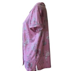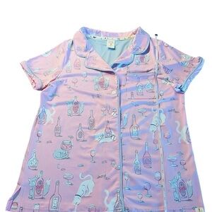 MUNKI MUNKI WOMENS PAJAMA TOP SIZE LARGE CAT & WINE PATTERN