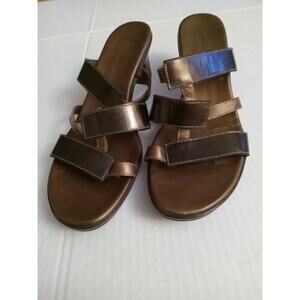 MUNRO 8M American Slide Comfort Sandals Women's Brown Patent Leather Block Heel