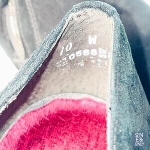 MUNRO Annee Suede Low Ankle Booties Womens Sz 10W Black Almond Toe Block Heels