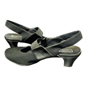 MUNRO "Ella" Fabric/Patent Slingback Pump - Size 6 1/2W