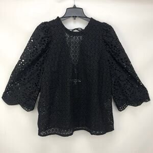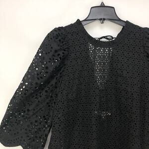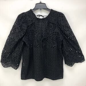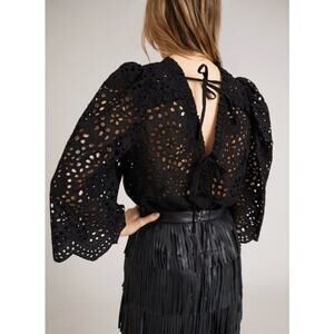 MUNTHE 1048 Como Blouse EU 38 US 6 Black Eyelet Embroidered Puff Sleeve