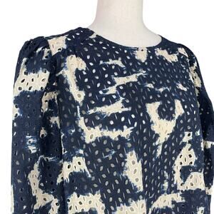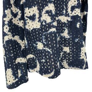 MUNTHE Rosalyn Tie-Dye Organic Cotton Long-Sleeve Eyelet Navy Blouse EU 38/US 8