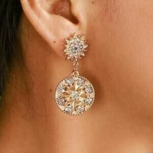 Fashion Rhinestone Round Dangling Halo Glasses Star Alloy Pierced Earrings