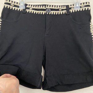 MUR MUR Black Shorts Embroidered Stretchy Fabric Size Medium