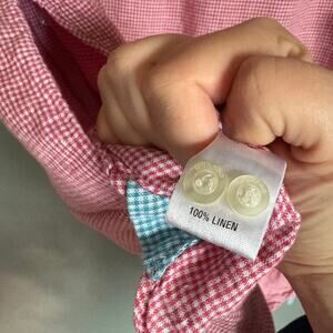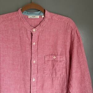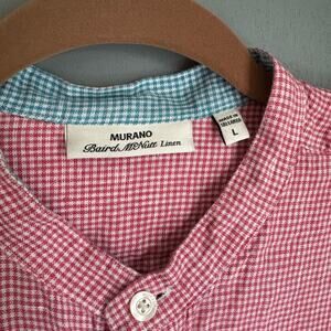 MURANO BAIRD MCNUTT Men's L Red Check Long Sleeve Linen Button Up Summer Classic
