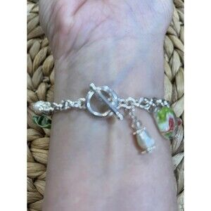 MURANO Glass Red & Green Fresh Water Pearl Charm Bracelet 7in