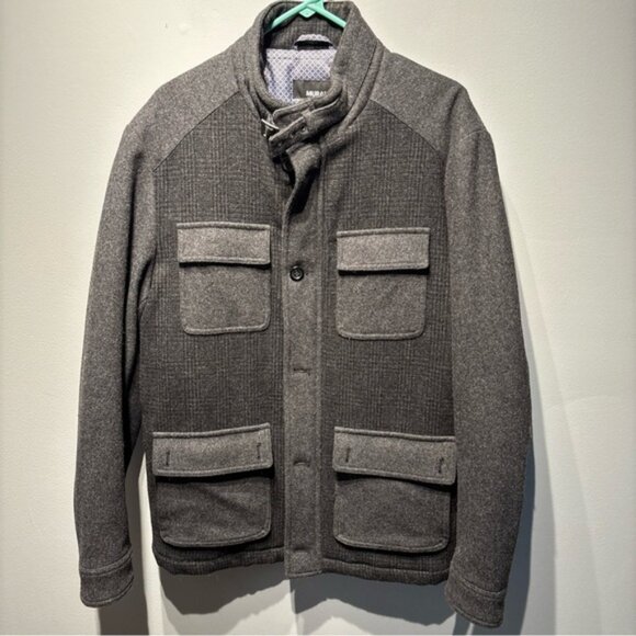 MURANO MEN'S CHARCOAL GRAY WOOL BLEND MILITARY STYLE JACKET Puffer Lining SZL