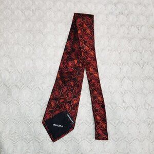 MURANO Neck Tie Black Orange WOVEN SILK Circles Geometric Pattern VERY SLEEK 3.75"