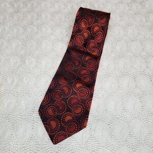 MURANO Neck Tie Orange Black Circles WOVEN SILK Geometric Pattern VERY SLEEK