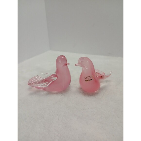 MURANO Pink Glass LOVEBIRDS Pair Vetreria Artistica OBALL Dove Figurine Italy