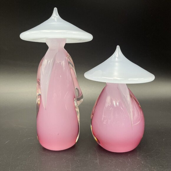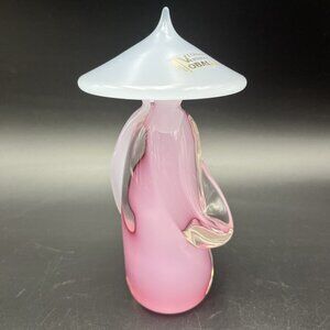 MURANO VETRERIA ARTISTICA OBALL PINK & WHITE ALABASTRO ASIAN ORIENTAL MAN & LADY