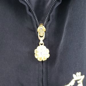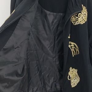 MURELI black full zip jacket with gold safari appliqué women’s Medium