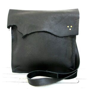 RAW EDGE BLACK THICK GENUINE LEATHER SHOULDER BAG